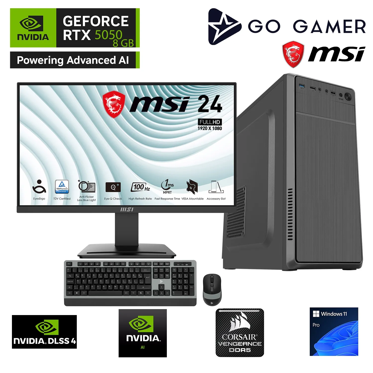 Go Gamer S148D Intel Core i3 14100F / 32GB DDR5 5200MHz / 1TB NVMe SSD 5000-3600MB-sn / RTX5050 8GB / MSI 24" / Windows 11 Pro Masaüstü Bilgisayar