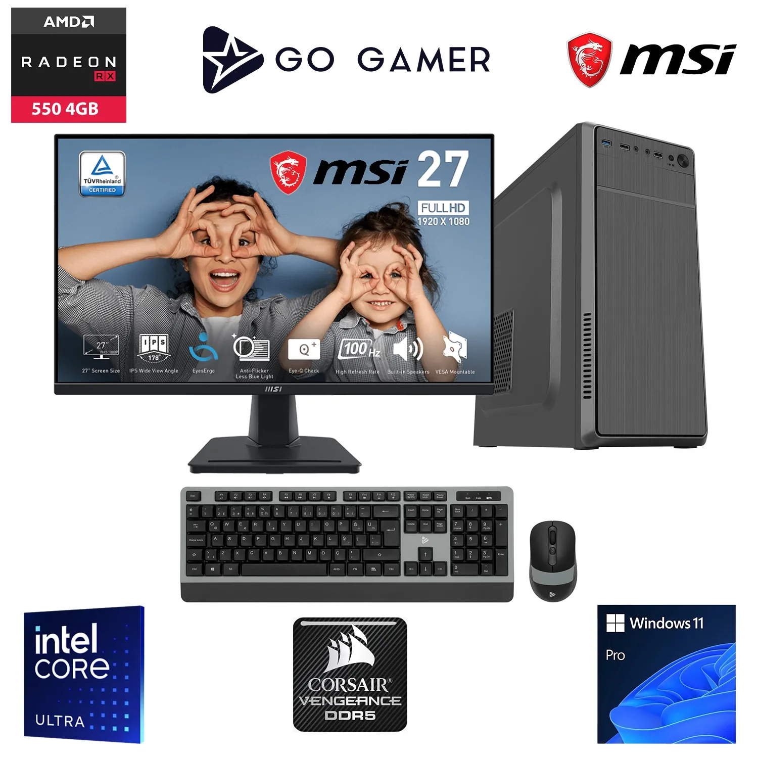 Go Gamer U13D Intel Core Ultra 5 225F / 16GB DDR5 5200MHz / 512GB m.2 SSD / RX550 4GB / MSI 27" 100Hz / Windows 11 Pro İş Bilgisayarı
